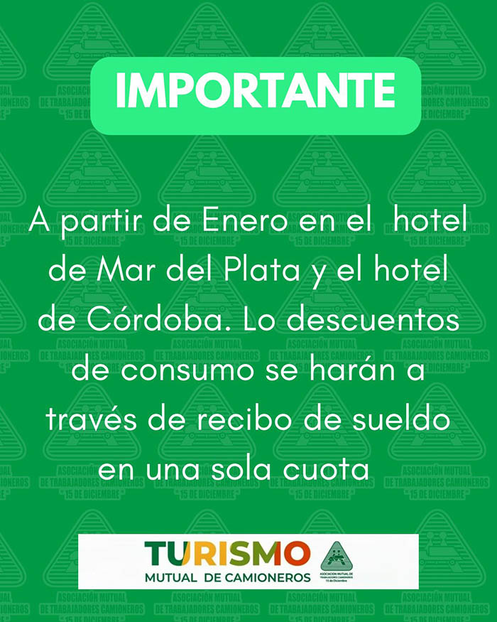 Importante: a partir de enero, los consumos con voucher realizados en los hoteles de Mar del Plata y La Falda se descontarán del recibo de sueldo en una sola cuota.